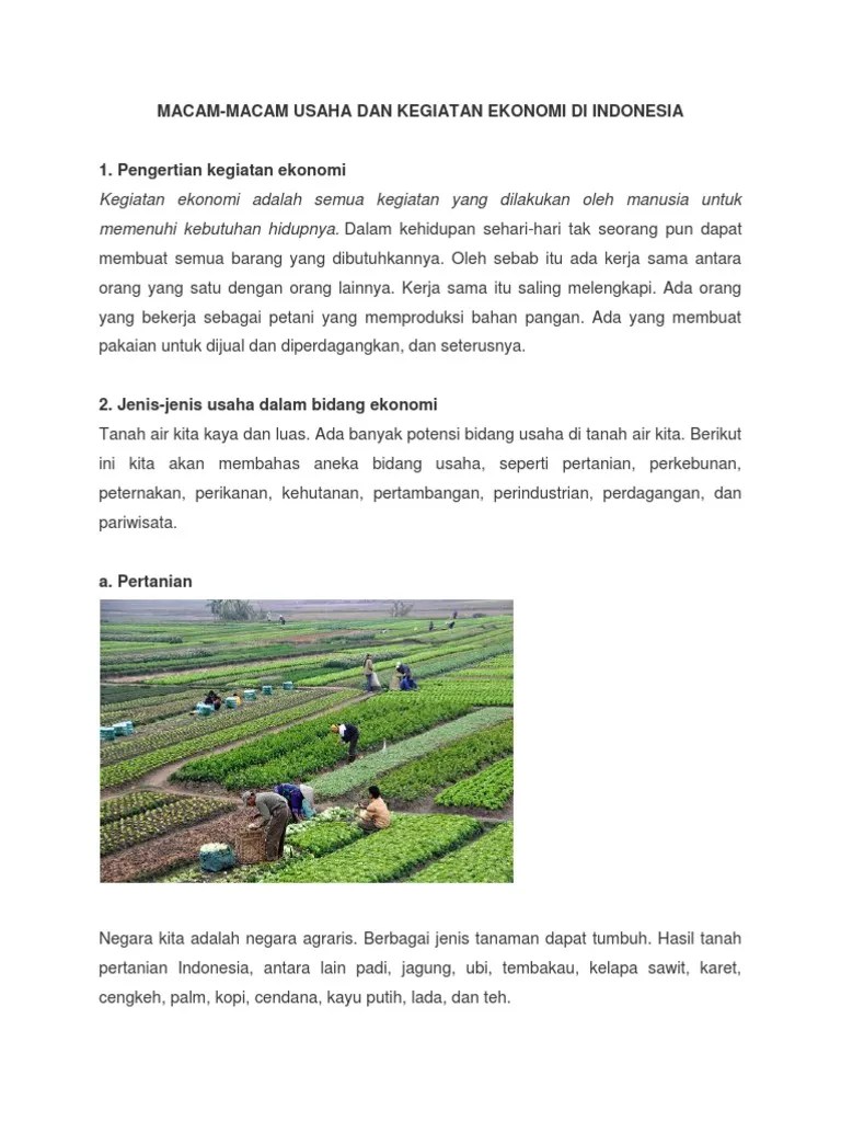Kegiatan ekonomi agraris adalah kegiatan ekonomi penduduk dalam memanfaatkan faktor faktor alam. Berbagai macam bidang usaha ini potensial untuk digeluti oleh seorang calon wirausahawan. Potensi pertanian indonesia sebagai salah satu negara yang termasuk dalam wilayah tropis, indonesia memiliki potensi pertanian yang sangat baik, terutama untuk pertanian tropika. jenis usaha yang terdapat gambar di bawah ini adalah. Bagi perusahaan yang terdaftar di pemerintah, mereka mempunyai badan usaha untuk perusahaannya. 5 jenis usaha perikanan di indonesia berdasarkan kegiatan usahanya dibagi menjadi 5 jenis usaha yaitu : Bagi orang yang akrab dengan blog atau website pasti sudah sangat kenal dengan jasa seo. Apabila yang dimaksud dengan status usaha yaitu jenis badan usaha, maka untuk mengubah suatu jenis badan usaha bergantung pada visi misi dan tujuan dari badan usaha itu. usaha dibidang agraris merupakan kegiatan produksi yang menggunakan tanah sebagai faktor produksi utama. Berdasarkan jenis kegiatan yang dilakukan. Berikut beberapa jenis usaha selain pertanian. Industri semen, besi, dan baja. jenis barang yang dijual itu tidak selalu tetap atau sama, artinya dapat berubah kapanpun.